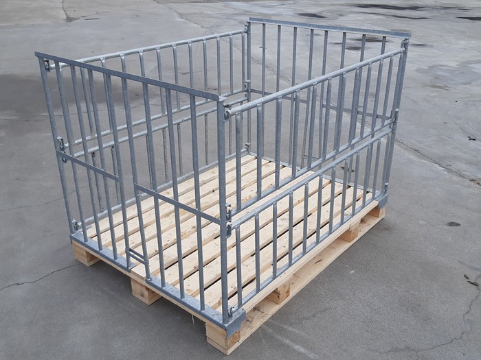 - Von Hand zerlegbar in zwei Seitenteile, vier Klappen und einer Palette